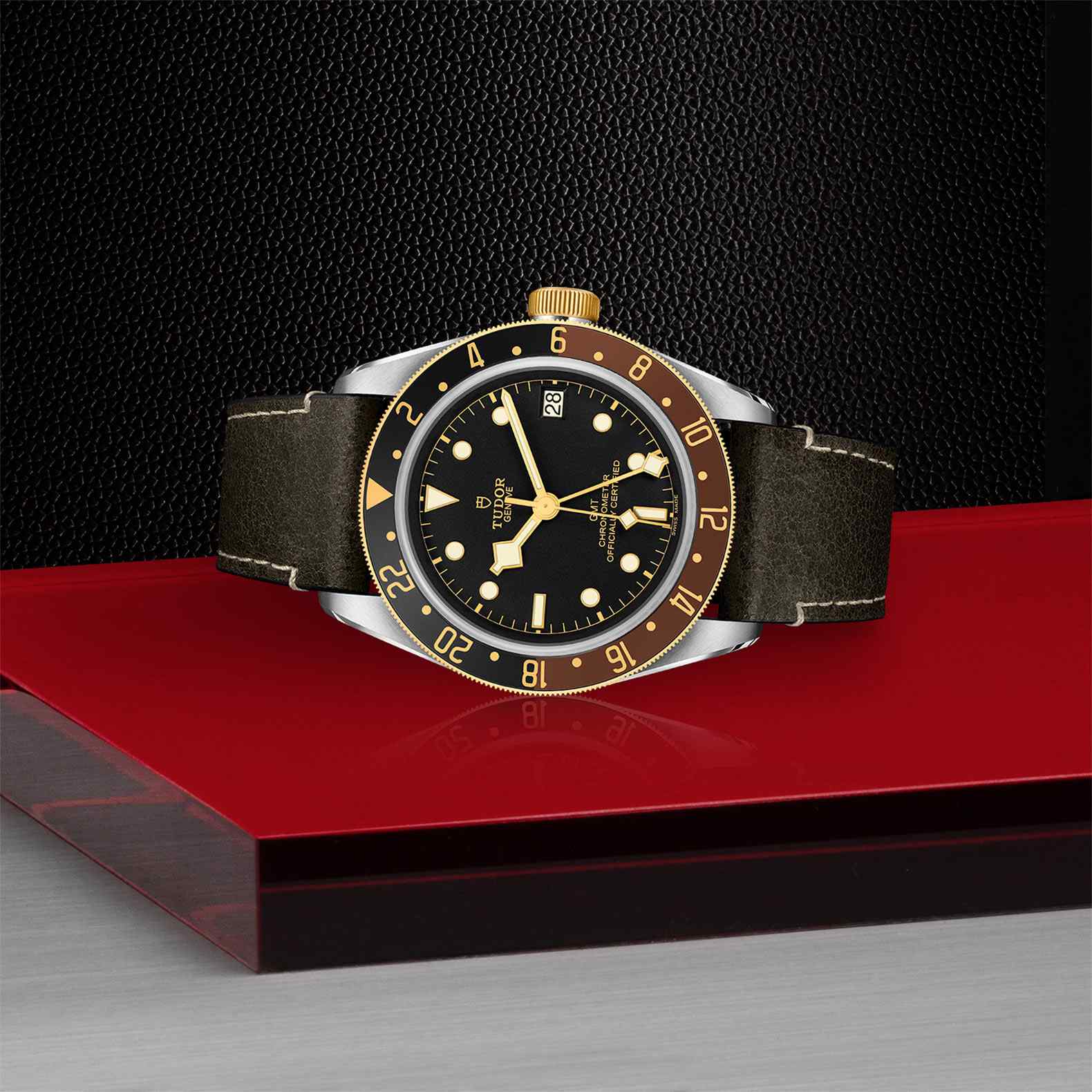 The Black Bay GMT is an extension of the Black Bay line with a highly functional complication: a multiple time-zone function – also known as a GMT function. Recognisable by its rotatable bezel, which derives its deep blue and burgundy colour theme from other models in the Black Bay line, but in a matt version, the Black Bay GMT is also a nod to the early days of this watchmaking function.