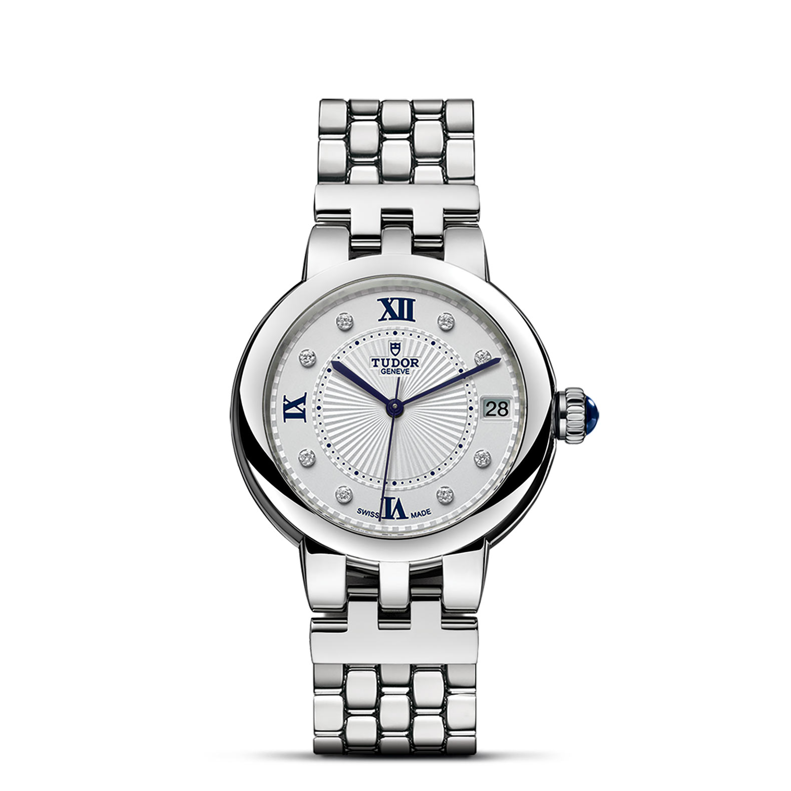 The Clair de Rose line, reimagined in a classic, refined and timeless spirit, uses the brand’ s historic aesthetic codes. The Clair de Rose collection is available exclusively in steel and in six configurations and three sizes, 26, 30 and 34 millimetres in diameter, it presents opaline dials with delicate decorations in relief, punctuated with blue lacquered Roman numerals or diamonds.