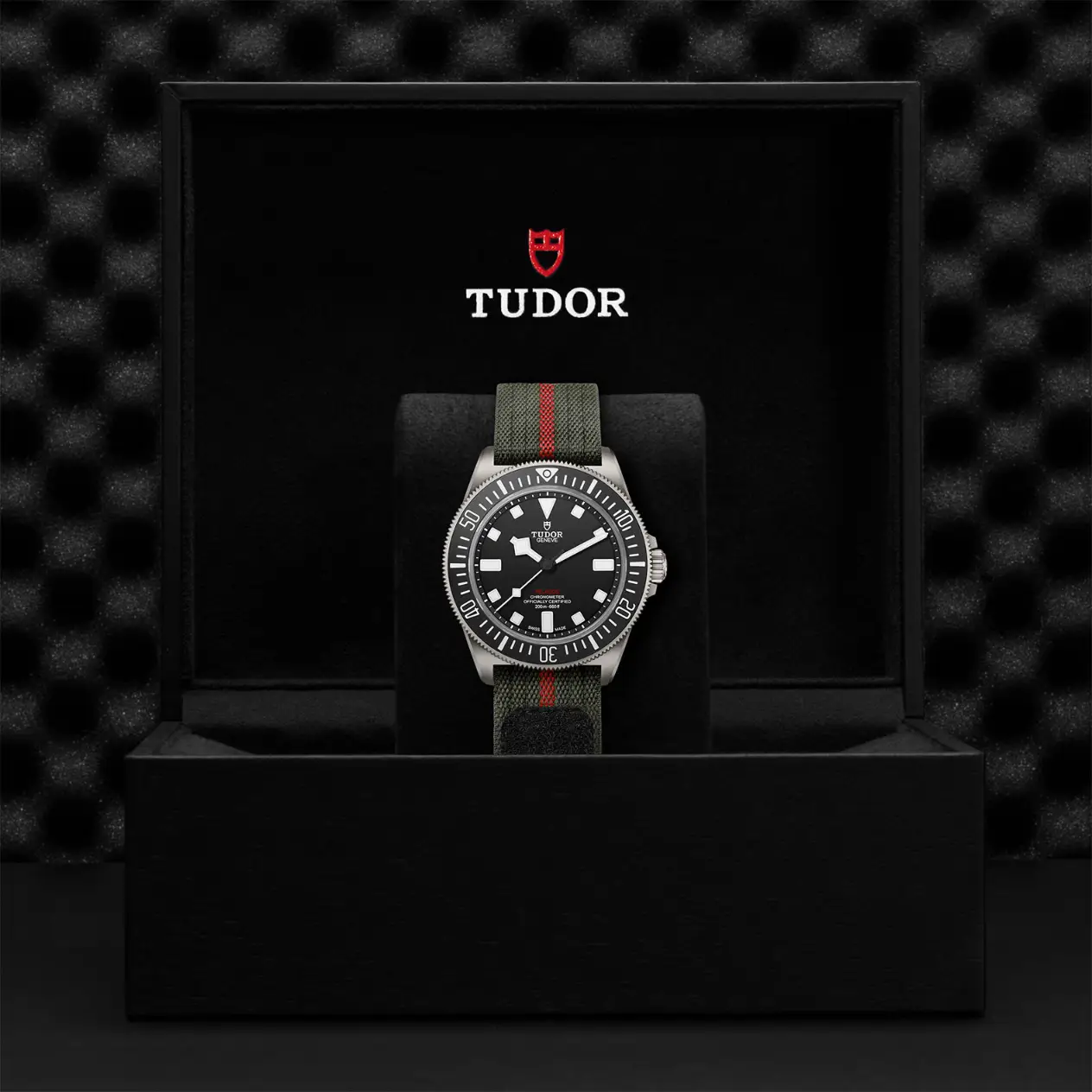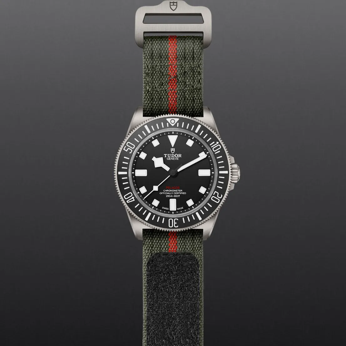The Pelagos FXD model, where FXD refers to the extra robust fixed strap bars of the case, was developed in conjunction with the French Navy’s combat swimmers. Waterproof to 200m (660 ft), it was designed for underwater navigation and is optimized for professional use. Also in the range is a model that pays tribute to the decades of TUDOR watches on the wrists of US Navy divers. Complete with fixed strap bars, a titanium case, a high-performance Manufacture Calibre and a unidirectional elapsed-time rotating bezel, it comes as the ultimate modern “Milsub” (short for Military Submariner) of yesteryear. Visually in line with a late ’60s-era TUDOR Oyster Prince Submariner; it incorporates elements from the US military specifications for diving watches. In short, the FXD range is the product of TUDOR’s cooperation with two military organisations.