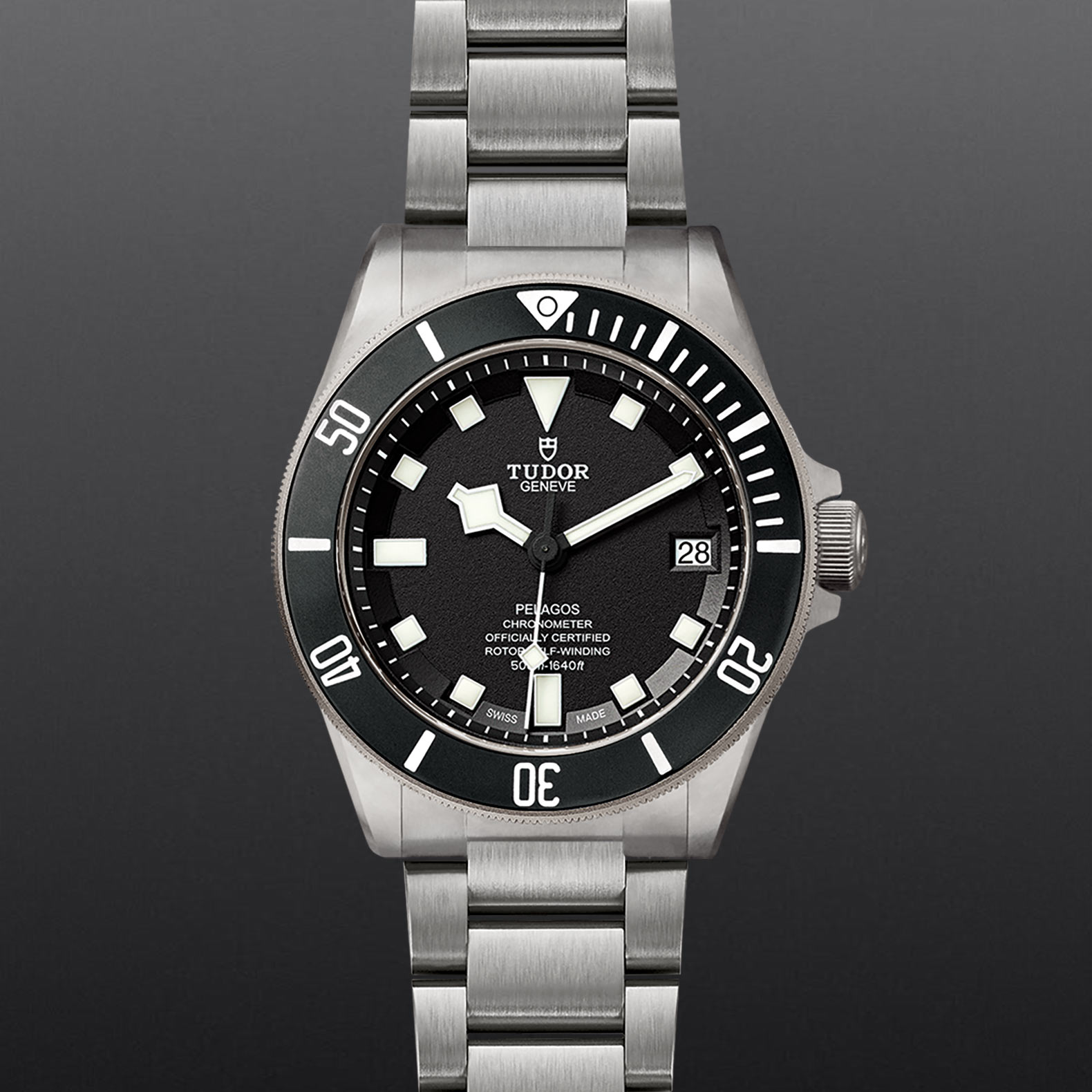Titanium winding crown with TUDOR logo in relief Helium escape valve at 9 o’clock