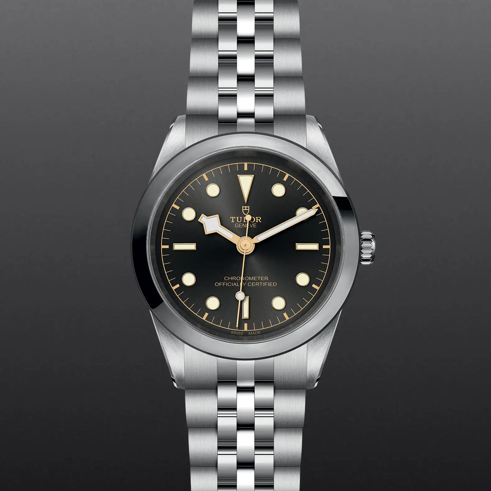 磨光及磨砂不锈钢表带,配帝舵表“T-fit”摺扣及保险扣